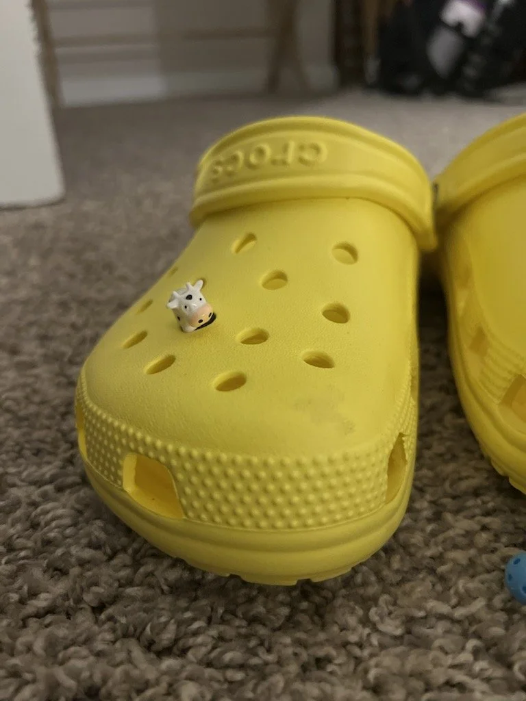 And as a past English major, you know I love symbolism. So if I had to choose one thing to symbolize how this stage of life is making me feel I would choose my crocs. One of our friends gave them to me and my husband right after our wedding and it was the perfect gift. They’re so versatile, you can kick them off as soon as you get to someone’s house, you can use them to let your feet breath after a long run, you can wear them before going to the pickleball courts, or even before you put heels on for the office! They’re perfect, and mine are yellow (my fav color) and they have a cow jibbit (did you know they were called jibbits and not jiblets?? I swear I’ve been saying it wrong my entire life).